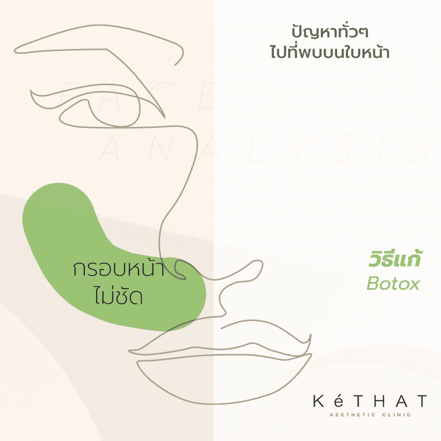 กรอบหน้าไม่ชัดนั้นเป็นปัญหาที่สามารถพบได้ทั่วไป สำหรับคนที่มีปัญหานี้ สามารถใช้โบท็อกซ์ฉีดบริเวณกรอบหน้า ช่วยในเรื่องการทำให้กรอบหน้าดูชัดขึ้นได้ นอกจากนี้ยังสามารถร้อยไหมเก็บกรอบหน้า เพื่อให้หน้าดูเรียวขึ้นได้อีกด้วย