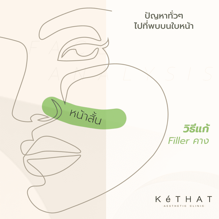 สำหรับคนที่มีใบหน้าสั้น แล้วอยากจะทำให้ดูเรียวยาวมากขึ้น สามารถแก้ไขได้โดยเติมฟิลเลอร์ที่คาง บริเวณ กรอบหน้า และร่องข้างคาง เพื่อช่วยเติมเต็มให้หน้าดูเรียวมากขึ้นได้