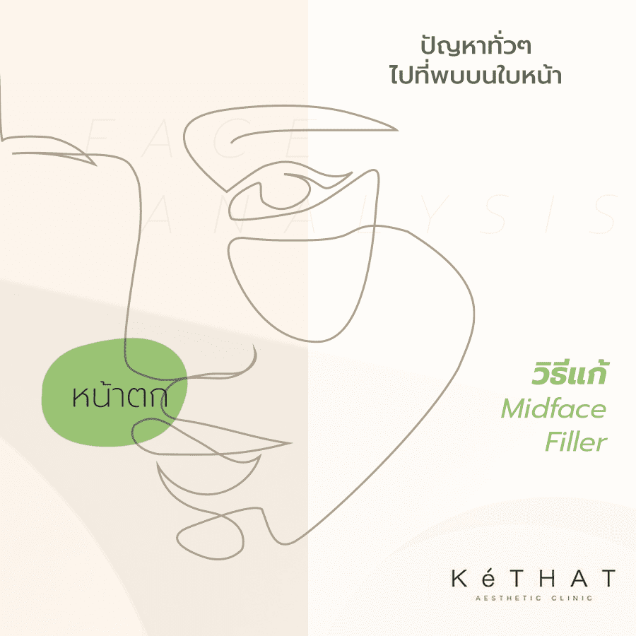 ถ้ามีปัญหาเรื่องใบหน้ามีลักษณะที่ตก ไม่เต่งตึง มีอายุ สามารถใช้ฟิลเลอร์เติมเต็ม ไขมันที่หายไป ช่วยยกใบหน้าให้ดูกระชับ และเข้าที่มากขึ้นได้ นอกจากนี้ยังสามารถทำการร้อยไหม เพื่อยกกระชับทั้งใบหน้าได้อีกด้วย