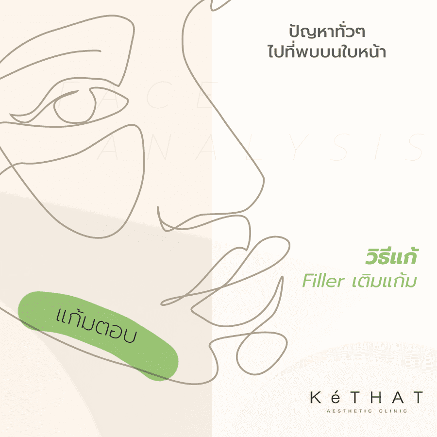 สำหรับใครก็ตามที่มีปัญหาแก้มตอบ หน้าผอม ทำให้ดูไม่สดใส สามารถเติมเต็มได้โดยใช้ฟิลเลอร์ช่วยเติมเต็มส่วนของแก้ม หน้าแก้ม และร่องแก้ม ให้หน้าดูอิ่มและดูอ่อนกว่าวัยมากขึ้น